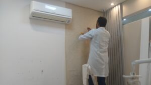 – Limpeza e nivelamento da parede para garantir a adesão.